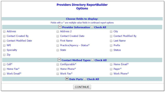 The instructions provided in this document detail use of the Providers Directory ReportBuilder only, not the corresponding ExportBuilder. For more information on using ExportBuilders, click here.